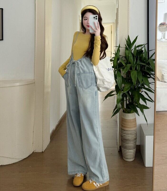 大人気のリボン付きデニムサロペットが登場!前後2WAYで着用でき、気分やスタイルに合わせて簡単に印象を変えることができます。ゆったりとしたワイドシルエットは体型をカバーし、ハイウエストのデザインがスタイルアップを実現!妊婦さんはもちろん、ぽっちゃりさんにもおすすめの一着です!