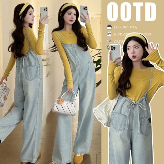 マタニティ 大きいサイズ 前後2WAY リボン付きデニムサロペット ワイドサロペット ハイウエスト リボン結び オーバーオール ママ服 韓国 人気 ゆったり 大きいサイズ デイリー 普段着 お出かけ カジュアル フェミニン 体型カバー 着痩せ 着回し 妊婦服 産前 産後 春 夏 CO5362