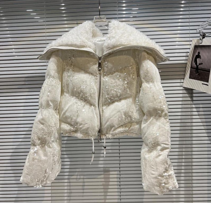 ダウンジャケット ショート 全3色 スパンコール キラキラダウンジャケット ビッグカラー ダウン ビッグボア襟 ショート丈 クロップド丈 キラキラダウンジャケット ドローストリング裾 韓国 小顔効果 お出かけ ディナー20代 30代 40代 CO5410