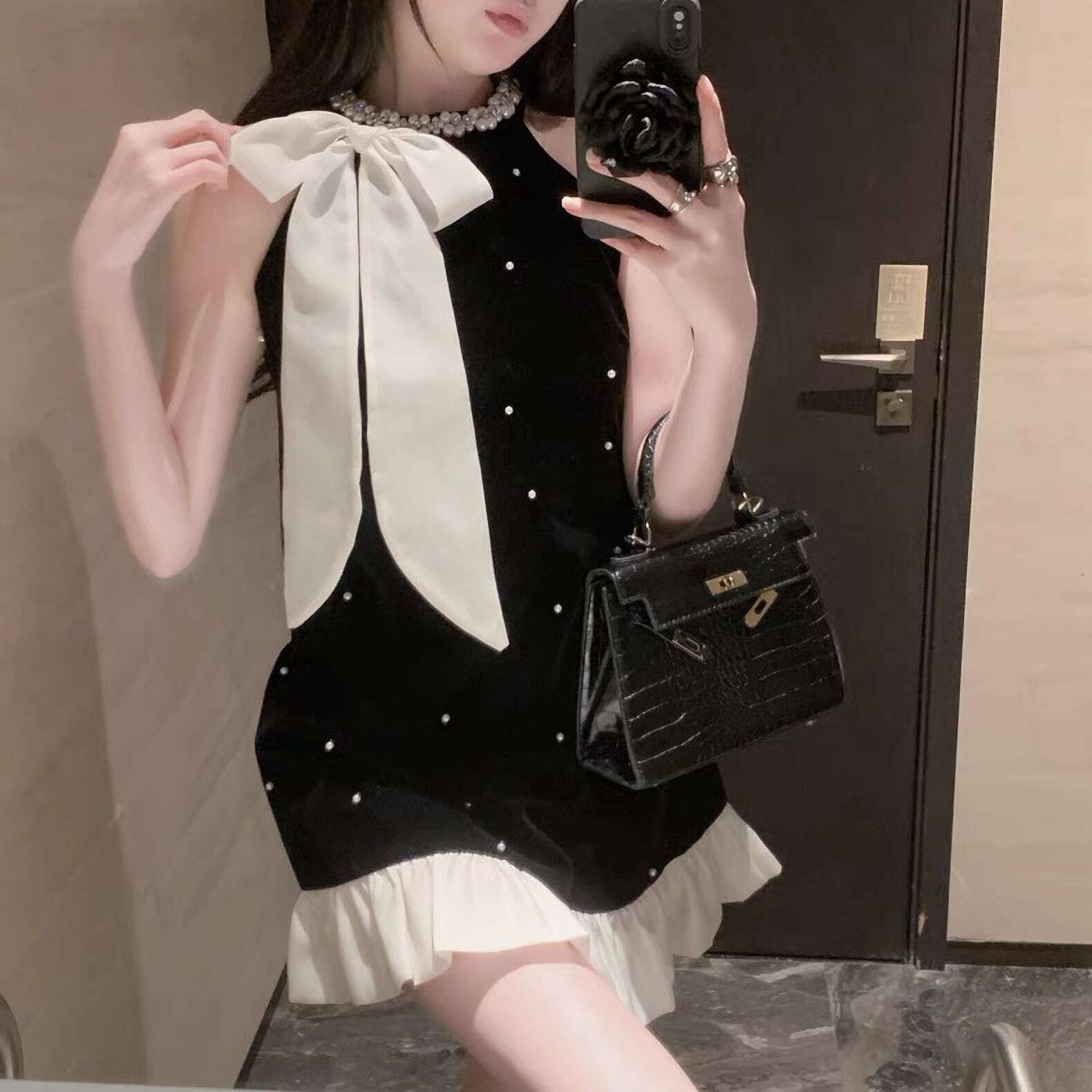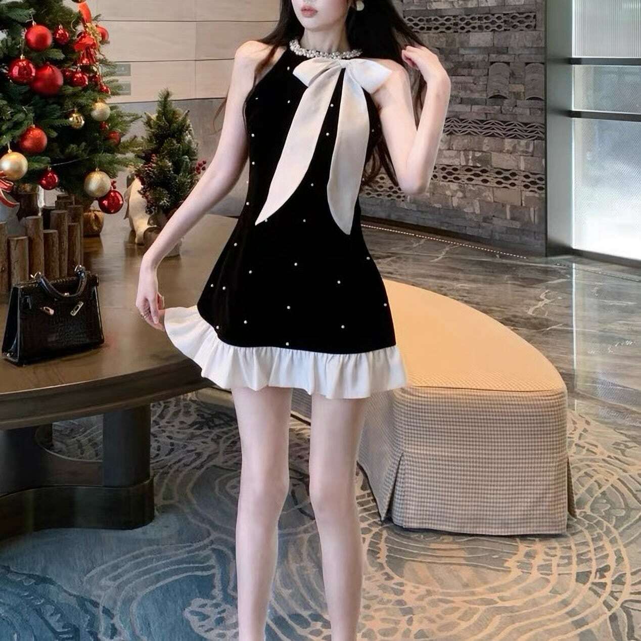 ベロア ワンピース リボン×パール ベロアミニワンピース リボン パール ミニ丈 パーティードレス 結婚式 二次会 お呼ばれ イベントライブ衣装 韓国ファッション フェミニン フレンチガーリー お嬢様 デート服 バレンタイン パーティー デート 20代 30代 CO5414