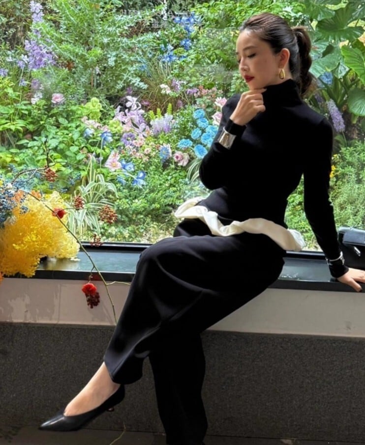 リブ×異素材ペプラムで、大人の余裕とスタイルアップを同時に叶える一着。