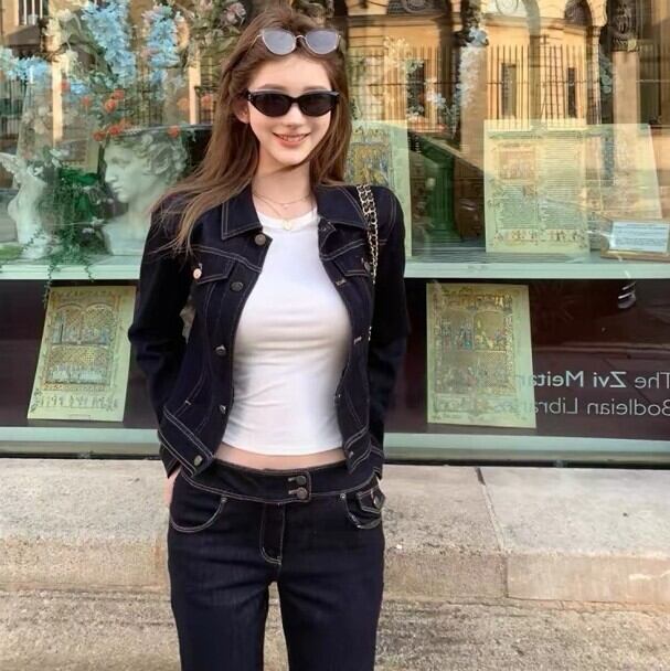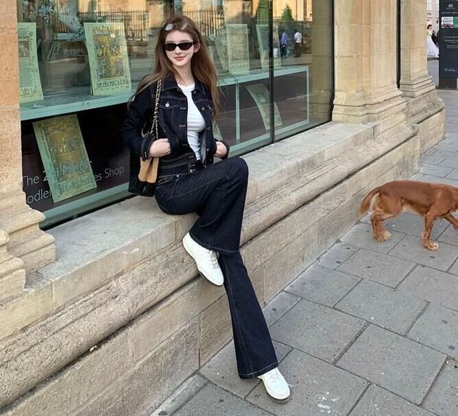 カジュアルになりがちなデニムセットアップも、深みのあるインディゴなら品よく都会的な印象に。 ハイウエストのフレアパンツとショート丈のジャケットが、スタイルアップを叶えます。忙しい朝も、これ1つでトレンド感のあるスタイリングが完成!