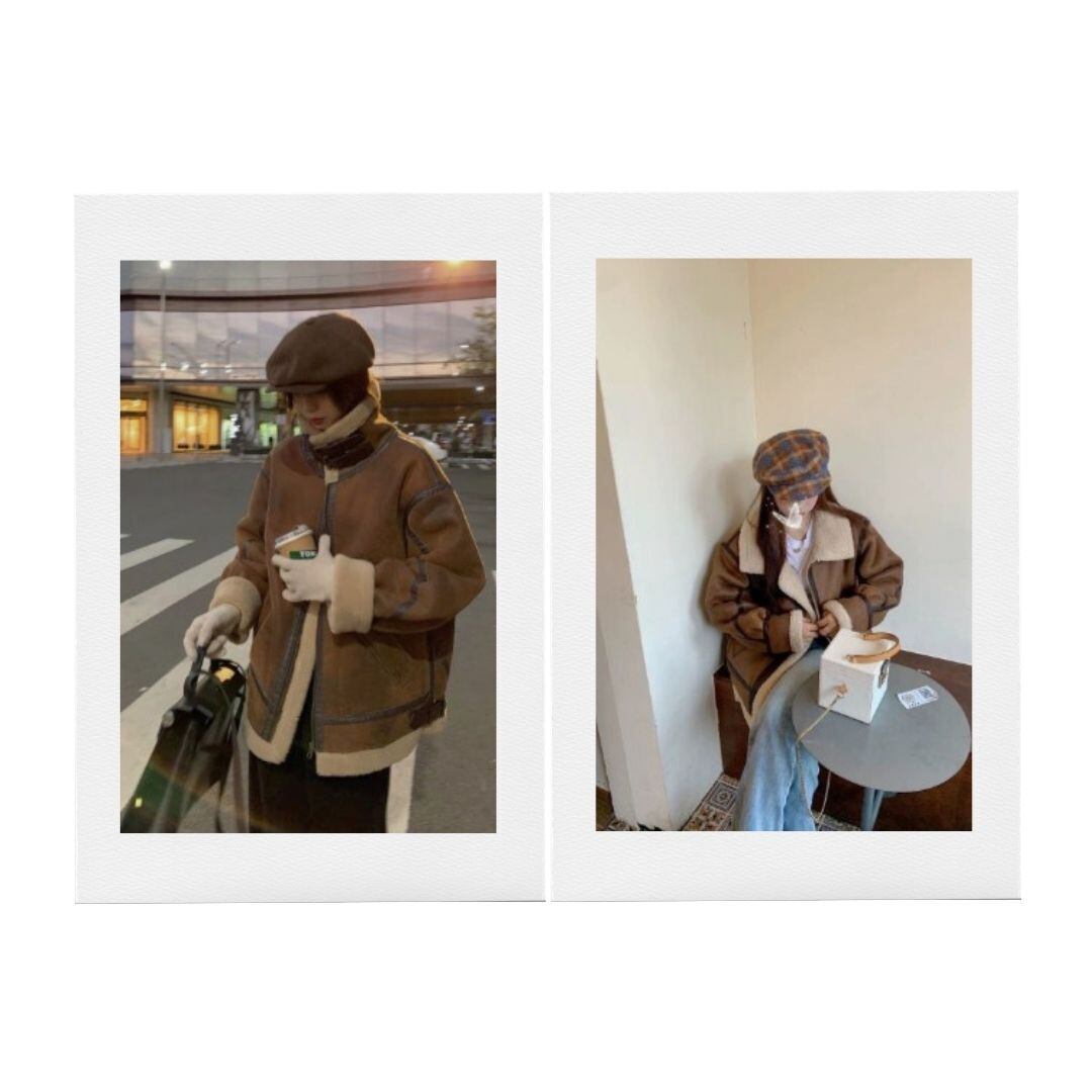 ムートンコート レディース ボアジャケット フェイクムートン 裏ボア ダブルベルト ハイネック フライトジャケット 厚手 ビンテージ加工 韓国ファッション おしゃれ 防寒 暖かい カジュアル ストリート 韓国ファッション ストリート系 大人カジュアル y2kファッション 20代 30代 40代 CO5421