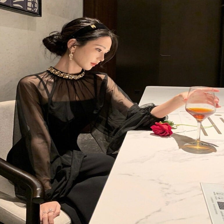 チュールの透け感と、贅沢なビジューの襟元に心奪われる1枚。顔周りを華やかに彩る贅沢なビジュー装飾は、アクセサリーいらずの存在感を放ちます。シアーブラウスを重ねれば上品なオケージョン仕様に。ブラウスを脱げば、洗練されたキャミソールワンピースとしても着用可能。シーンに合わせて表情を変えられます。華やかな結婚式から、ちょっと背伸びしたいディナーデートまで幅広く大活躍!