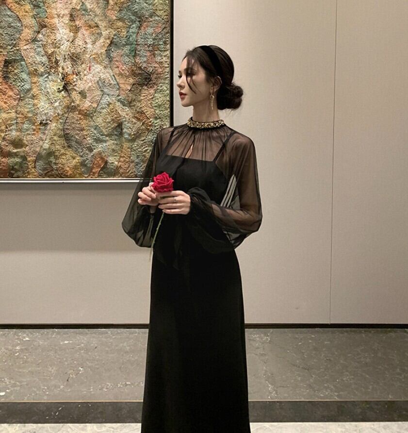 パーティードレス ロング ワンピース シアー チュール ハイネック ビジュー 襟 2way セットアップ風 タイト マーメイド セクシー きれいめ 上品 披露宴 二次会 謝恩会 同窓会 結婚式 お呼ばれ ドレス 結婚式 ドレス 韓国ファッション 演奏会 発表会 卒業パーティー 20代 30代 40代 CO5426