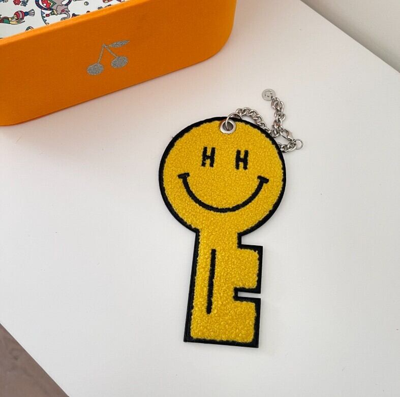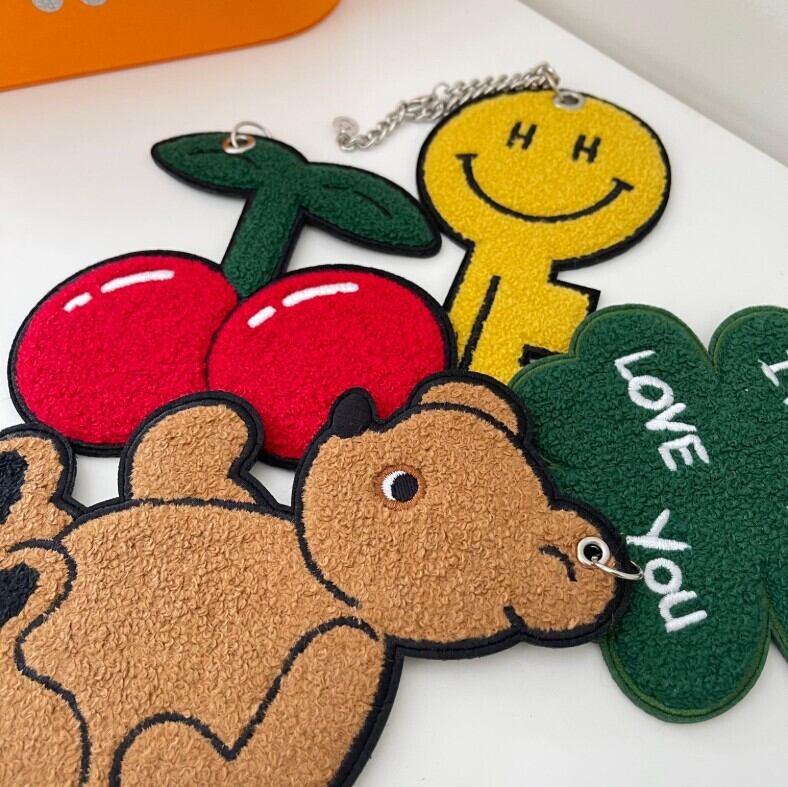チェーン型 サガラ刺繍 ニコちゃんバッグチャーム 鍵型 取り外し簡単 キーホルダー 韓国 キーリング スマイル チェリー 四葉のクローバー 大きめ キーチャーム y2k おしゃれ かわいい パイル 刺繍 トートバッグ お揃い 推し活 プチギフト CO5429