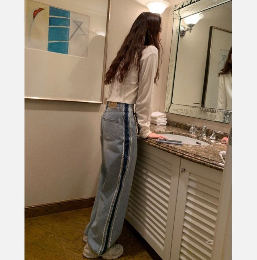 サイドフリンジ ライン デニム パンツ レディース サイドラインデニム ワイドパンツ デニムパンツ 配色 切替 ジーパン ジーンズ ボトムス ストレート 美脚 脚長 細見え ヴィンテージ風 リメイクライク ゆったり 韓国ファッション 大人カジュアル こなれ感 オールシーズン 20代 30代 40代 CO5433