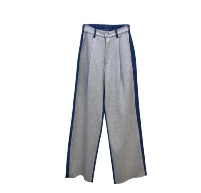 異素材ミックス ワイドパンツ デニム 切り替え ドッキング レディース スラックス バイカラー リメイク風 配色 サイドライン ハイウエスト 異素材パンツ 切り替えデニム ドッキングパンツ きれいめ カジュアル ゆったり 体型カバー 脚長 韓国ファッション 大人カジュアル 20代 30代 40代 CO5434