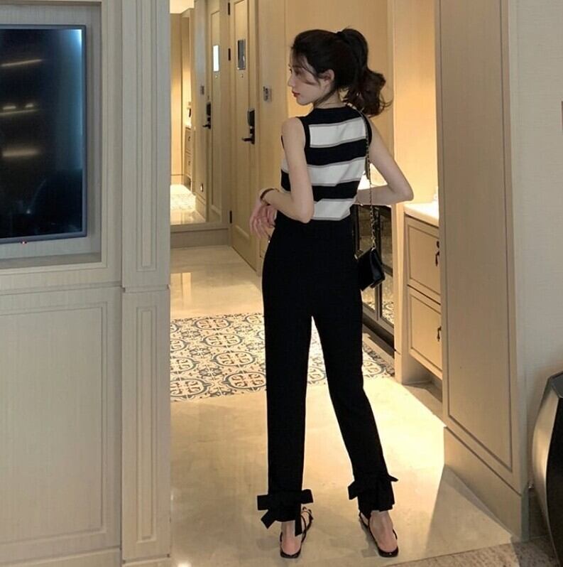 バックリボン ストレートパンツ レディース 裾リボン サイドファスナー ウエストタック アンクル丈 9分丈 クロップドパンツ 美脚 細見え 高見え きれいめ 上品 清楚 オフィス カジュアル ブラック ブラックパンツ 体型カバー 着痩せ 韓国ファッション 大人可愛い 20代 30代 40代 CO5435
