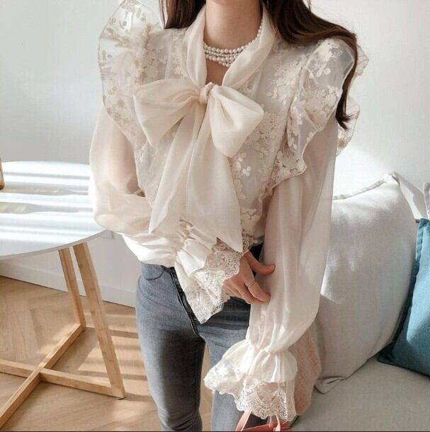 ボウタイ ブラウス トランペットスリーブ フリル フリルブラウス ベルスリーブ ボウタイリボン 長袖 リボン きれいめ トップス フォーマル おしゃれ 華やか 高見え フェミン 韓国 入園式 入学式 女子会 ランチ 通勤 お出かけ ママコーデ 20代 30代 40代 CO5443