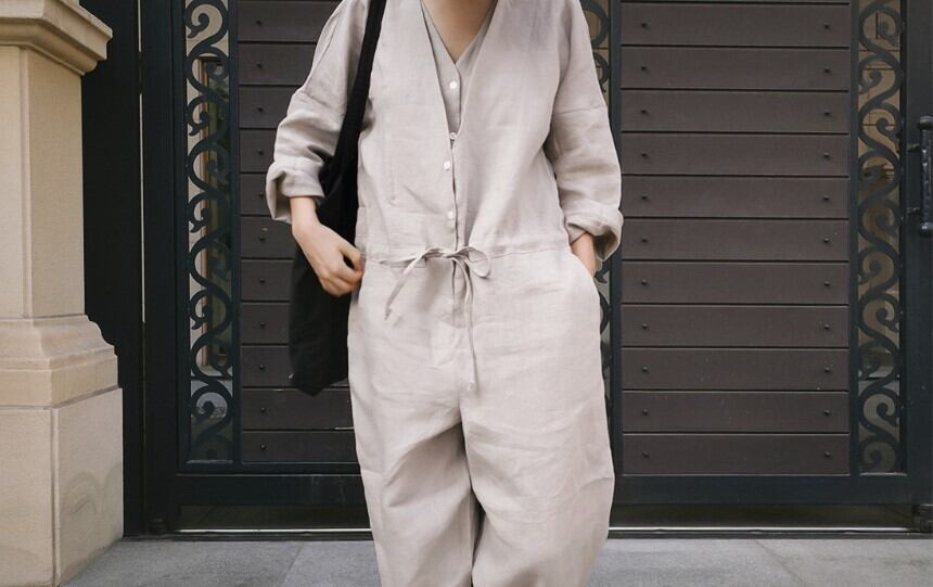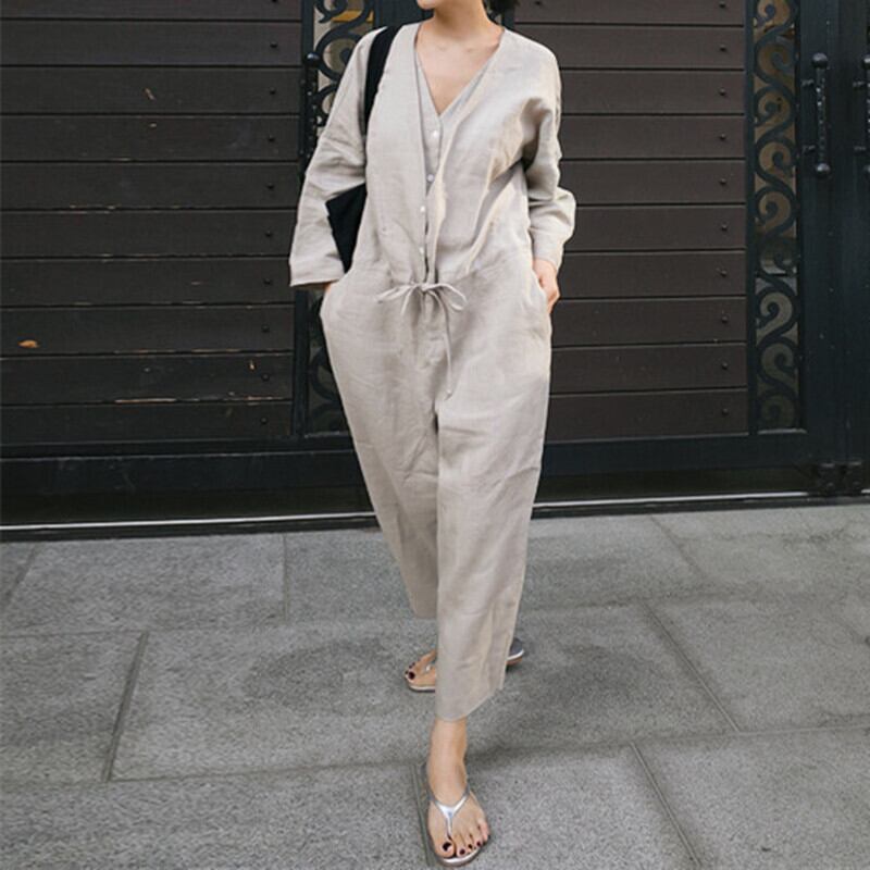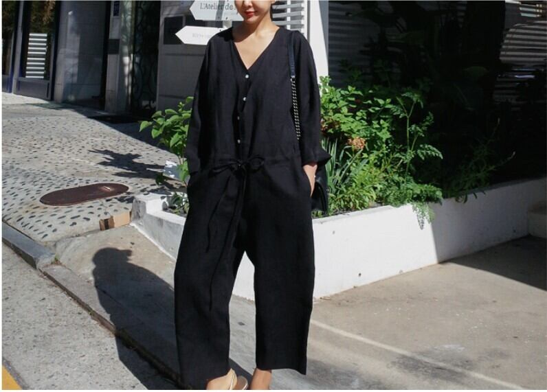 パンツ レディース オールインワン ジャンプスーツ Vネック アンクル丈 レイヤード ウエストリボン 紐 長ズボン ワイドパンツ ボタン ルーズ リラックス ナチュラル ラフ かっこいい シンプル カジュアル 大人かわいい 夏 トレンド 抜け感 オシャレ 韓国ファッション ママコーデ CO24