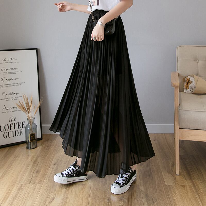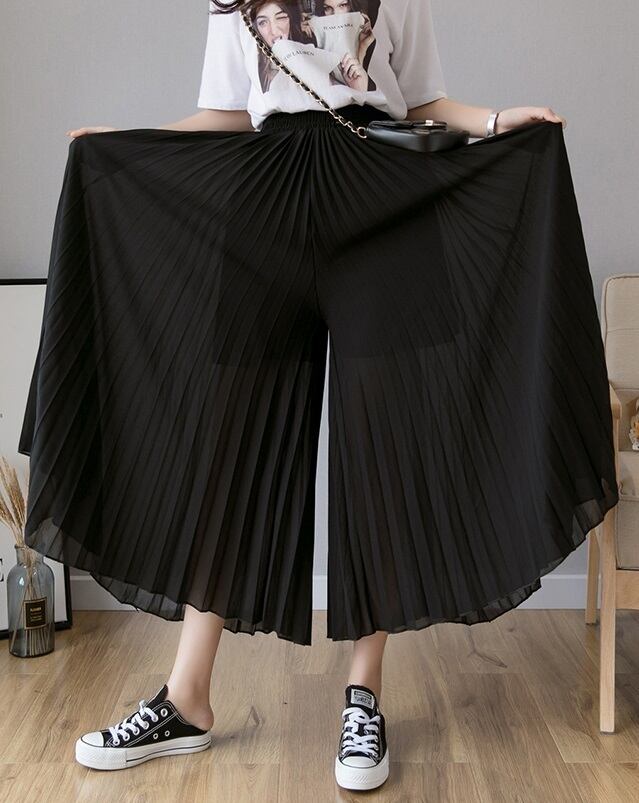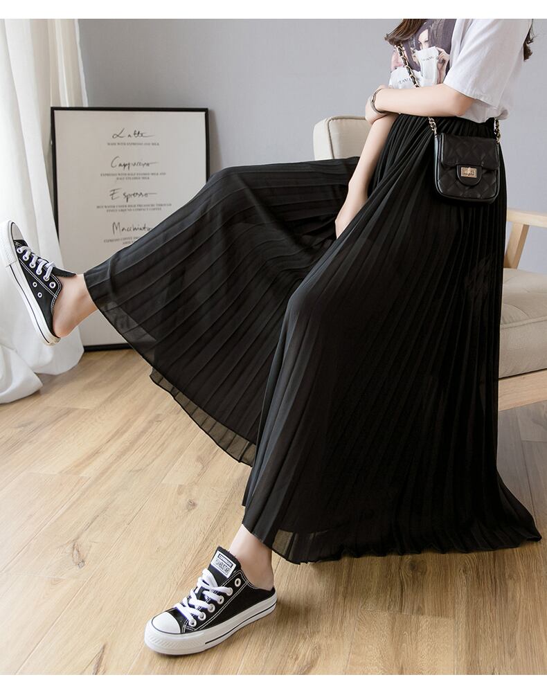ワイドパンツ スカーチョ ガウチョ パンツ プリーツ ロング シフォン ハイウエスト ゆったり 体型カバー ママコーデ 韓国ファッション レディース トレンド 春夏秋 20代30代40代 CO25