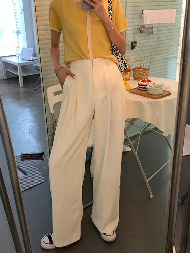 【送料無料】レディース カジュアルパンツ ワイドレッグ タックパンツ ワイドパンツ ハイウエスト スーツパンツ パンツ 4色カジュアルパンツ ゆったり 楽ちん ママコーデ 韓国 オルチャン トレンド 20代30代40代 CO40