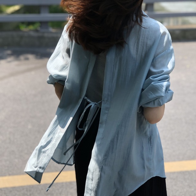 【送料無料】レディース ブラウス シアーブラウス バックシャンブラウス バックシャン ブラウスバックスプリット ストリングシャツ バックリボン 大胆 日焼け防止 クーラー対策 夏 大人可愛い トレンド人気 ママファッション ママコーデ 公園デビュー お買い物 韓国 オルチャン 20代30代40代 CO26