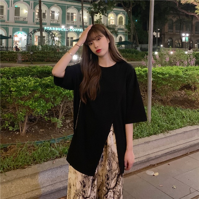 オーバーサイズなスリットTシャツがプラスされて、こなれ感もアップします◎
