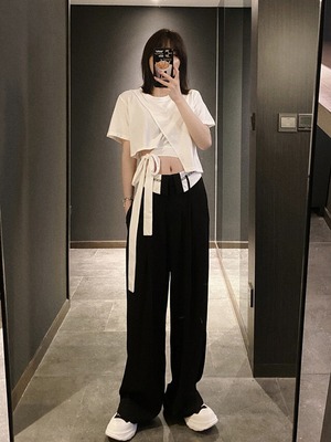 【送料無料】レディース ラウンドネック ショートトップス 不規則なデザイン サイドノット付きTシャツ 2カラー 大人可愛い ママコーデ ママファッション 韓国 オルチャンファッション 人気 トレンド 新作 おしゃれ ラフ 無地 シンプル ファッション デート 通学 学生 通勤 きれいめ ルーズ 秋 冬 春 夏 人気 女子力 おしゃれ シンプル セレブカジュアル ファッション デート 通勤 女子会 オフィス シック 着回し 流行 インスタ映え かっこいい こなれ感 20代 30代 40代 CO277