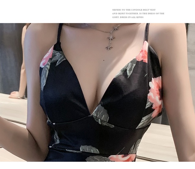 【送料無料】レディース ナイトクラブ セクシー Vネック ブラック プリント スリングスカート イブニングドレス スカートドレス 大人可愛い ママコーデ ママファッション 韓国 オルチャンファッション 人気 トレンド 新作 20代 30代 40代 ハイウエスト 花柄 タイト かわいい きれいめ レトロ 定番 ルームウェア お出かけ デート おしゃれ 通勤 通学 オフィス OL ラフフェミニン シック 着回し インスタ映え 春 夏 秋 CO373