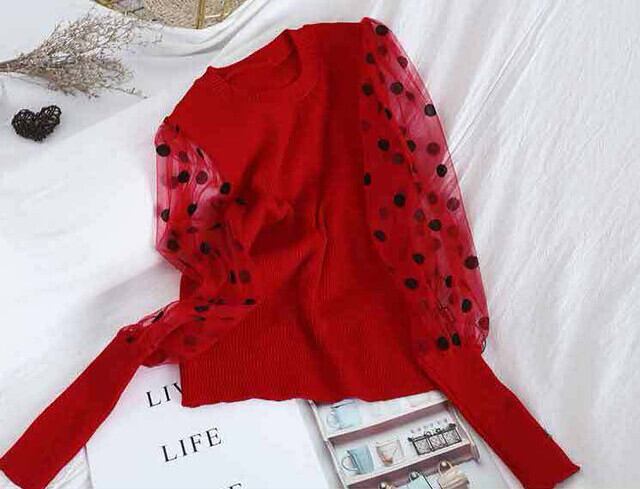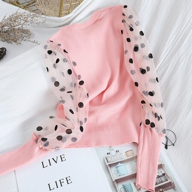 【送料無料】レディース ドット柄 シースルースリーブ 長袖 トップス ラウンドネック プルオーバーセーター 韓国 大人可愛い ママコーデ ママファッション 韓国 オルチャンファッション 人気 トレンド 新作 20代 30代 40代 おしゃれ ラフ 無地 シンプル デート 通学 学生 きれいめ ルーズ 秋 冬 春 夏 人気 女子力 おしゃれ セレブカジュアル ファッション デート 通勤 女子会 オフィス シック 着回し 流行 インスタ映え かっこいい こなれ感 CO289