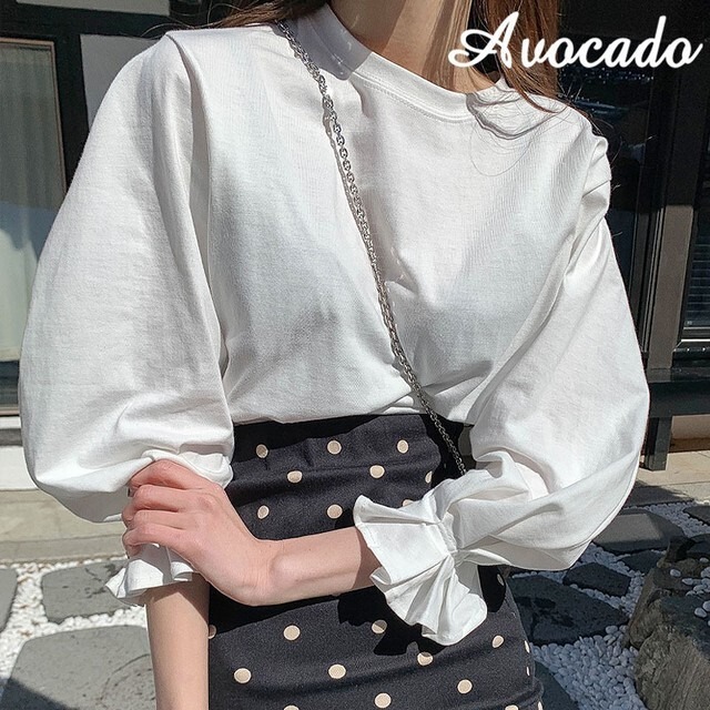 パフスリーブの七分丈トップスは華奢見え効果抜群!!