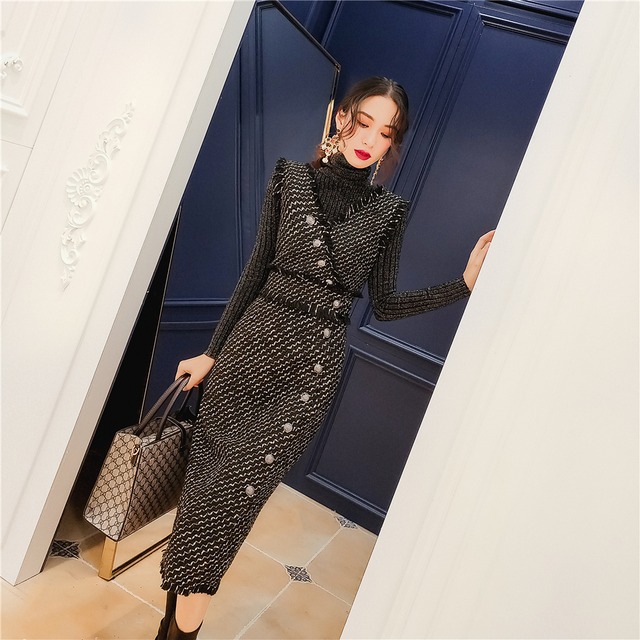 【送料無料】レディース シック タイトワンピ サイドスリット ロングワンピース ツイード ハイウエスト 大人可愛い ママコーデ ママファッション 韓国 オルチャンファッション 人気 トレンド 新作 20代 30代 40代 フリンジ きれいめ レトロ シンプル 無地 定番 ルームウェア お出かけ デート おしゃれ 通勤 通学 オフィス OL デイリー 普段着 ラフ カジュアル フェミニン シック ゆったり 体型カバー 着痩せ 着回し インスタ映え 秋 冬 春 CO395