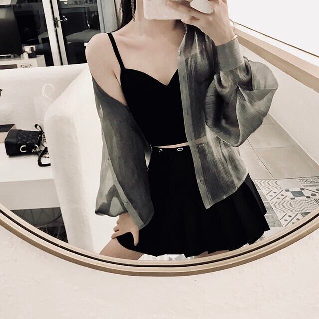 シースルー素材と光沢のあるシルバーグレーで大人かっこいいを演出します…☆