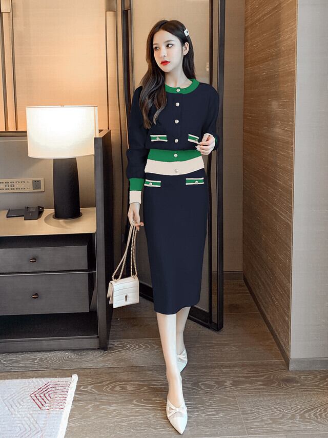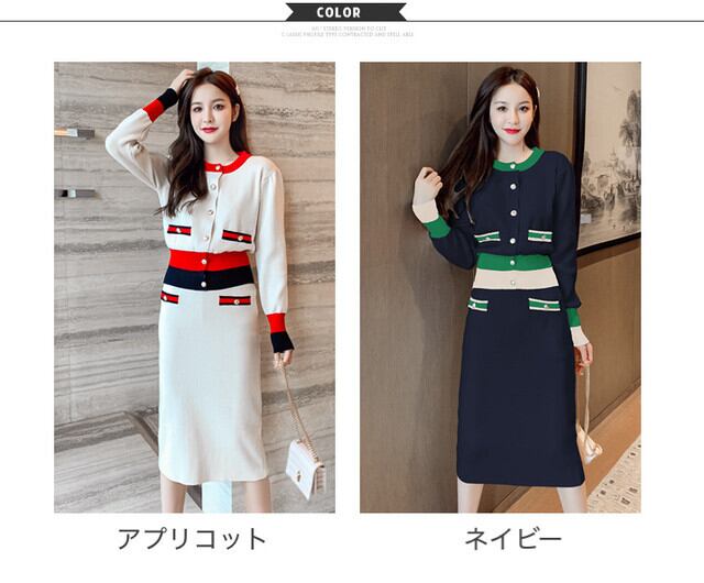 【送料無料】ニットカーディガン+ニットスカート ミドル丈 ツーピース トリコロール レディース 大人可愛い ママコーデ ママファッション 韓国 オルチャンファッション 人気 トレンド 新作 20代 30代 40代 おしゃれ ラフ シンプル デート 通学 学生 きれいめ ルーズ 秋 冬 春 夏 人気 女子力 おしゃれ セレブカジュアル ファッション 通勤 女子会 オフィス シック 着回し 流行 インスタ映え かっこいい こなれ感 CO346