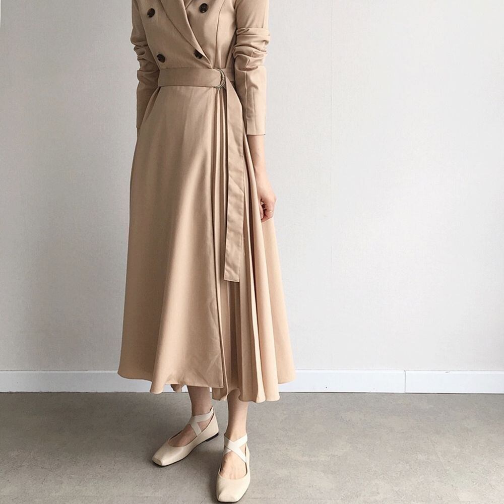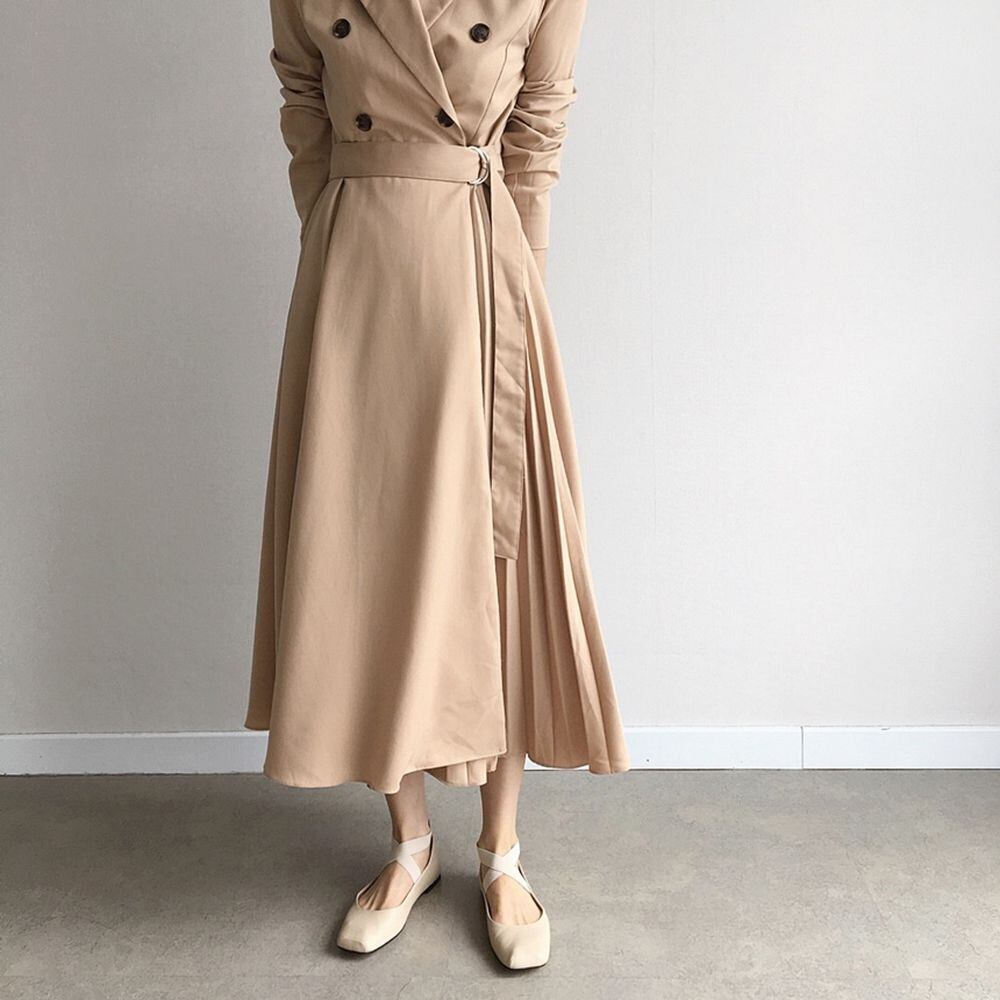 【送料無料】レディース ハイウエスト ロングドレス トレンチコート 2way スリム 大人可愛い ママコーデ ママファッション 韓国 オルチャンファッション 人気 トレンド 新作 20代 30代 40代 サイドプリーツ きれいめ レトロ シンプル 無地 定番 ルームウェア お出かけ デート おしゃれ 通勤 通学 オフィス OL デイリー 普段着 ラフ カジュアル フェミニン シック ゆったり 体型カバー 着痩せ 着回し インスタ映え 秋 冬 春 夏 CO443