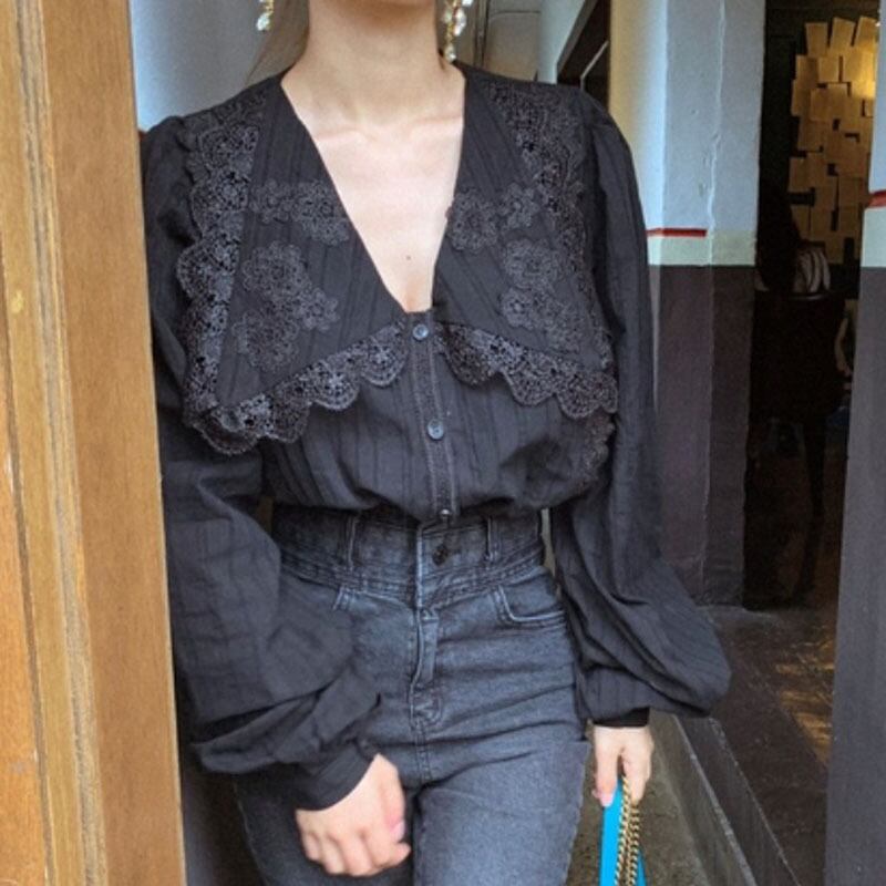 【送料無料】レディース フレンチシャツ バブル 長袖 シャツ レース パッチワーク トップス 大人可愛い ママコーデ ママファッション 韓国 オルチャンファッション 人気 トレンド 新作 20代 30代 40代 きれいめ レトロ シンプル 無地 定番 ルームウェア お出かけ デート おしゃれ 通勤 通学 オフィス OL デイリー 普段着 ラフ カジュアル フェミニン シック ゆったり 体型カバー 着痩せ 着回し インスタ映え 秋 冬 春 夏 CO451