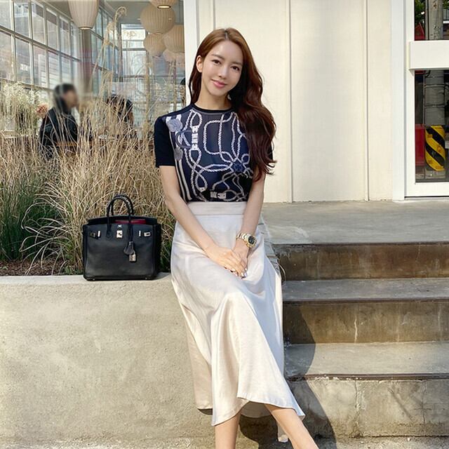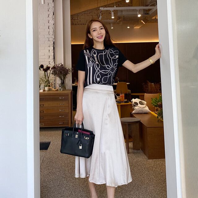 エレガントなプリントのTシャツです。