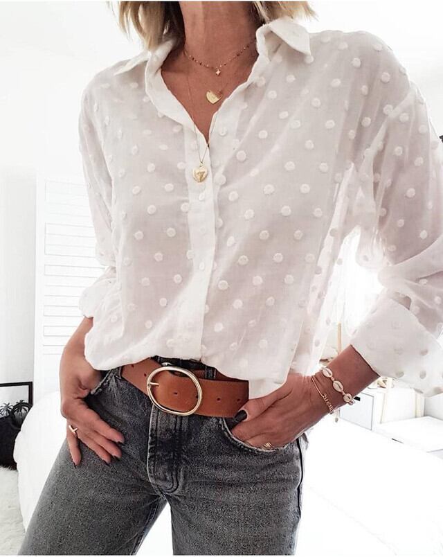 適度な透け感とドット柄が大人セクシーな長袖シャツ