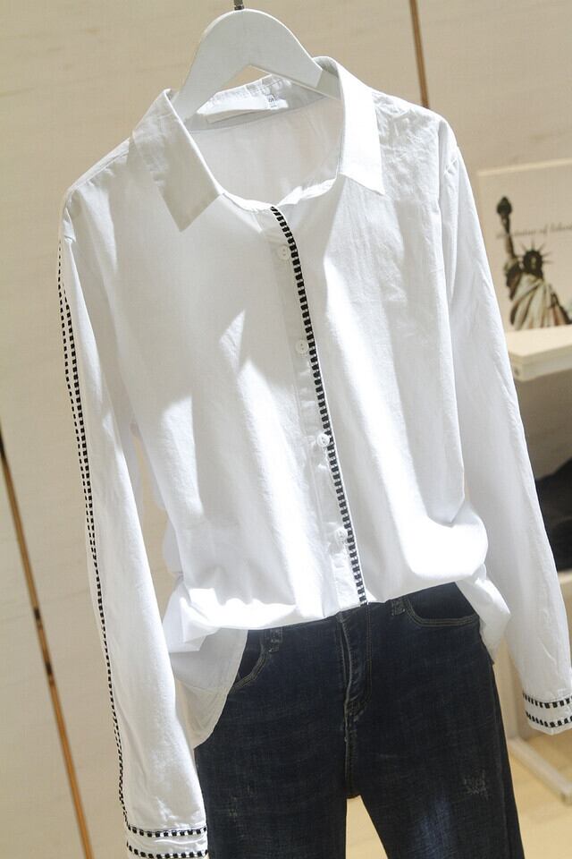 白生地にストライプがアクセントの長袖シャツ