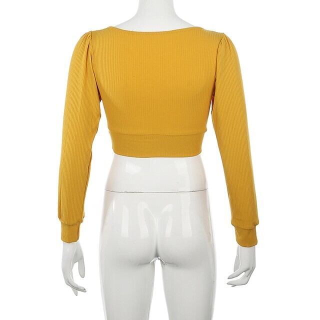 スクエアネックのショート丈スリムトップス