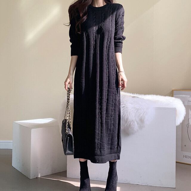 【送料無料】レディース ラウンドネック 上ロングニットセーター ワンピース ドレス 2カラー 大人可愛い ママコーデ ママファッション 韓国 オルチャンファッション 人気 トレンド 新作 20代 30代 40代 きれいめ レトロ シンプル 定番 スタイリッシュ お出かけ デート おしゃれ 通勤 通学 オフィス OL デイリー 普段着 ラフ カジュアル フェミニン シック 体型カバー 着痩せ 着回し インスタ映え 秋 冬 CO550