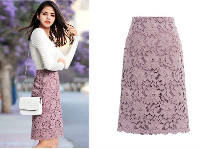 フラワーレースがキレイなミドル丈スカート