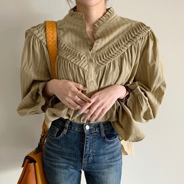 【送料無料】レディース ランタンスリーブシャツ プリーツ 刺繍 シングルブレスト ルーズ 大人可愛い ママコーデ ママファッション 韓国 オルチャンファッション 人気 トレンド 新作 20代 30代 40代 おしゃれ ラフ シンプル デート 通学 学生 きれいめ ルーズ 秋 冬 春 夏 人気 女子力 おしゃれ セレブカジュアル ファッション 通勤 女子会 オフィス シック 着回し 流行 インスタ映え かっこいい こなれ感 CO845