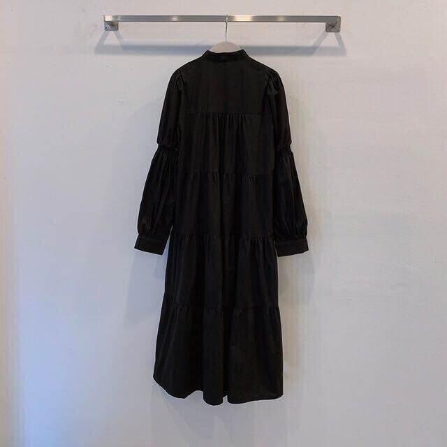 袖絞りデザインとフレアデザインが可愛いシャツワンピース。