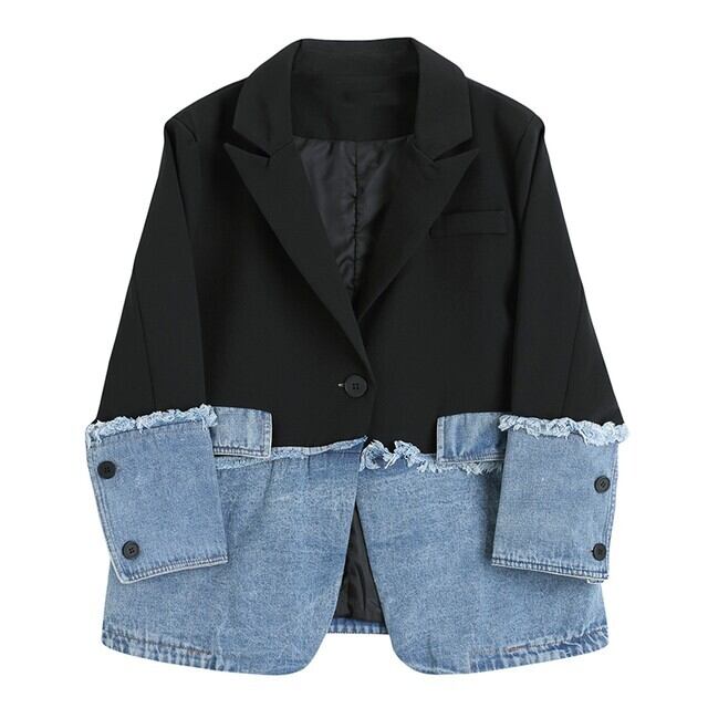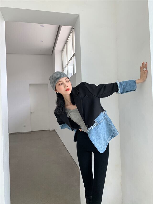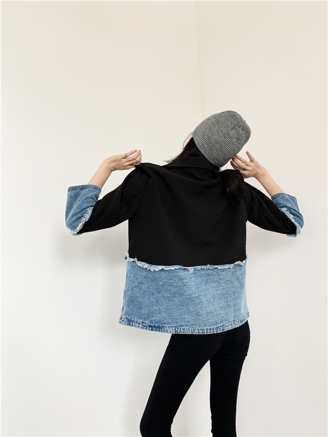 【送料無料】レディース スーツカラー 切り替えデニム ルーズジャケット オールマッチカラー ジャケット 大人可愛い ママコーデ ママファッション 韓国 オルチャンファッション 人気 トレンド 新作 20代 30代 40代 おしゃれ ラフ シンプル デート 通学 学生 きれいめ ルーズ 秋 冬 春 夏 人気 女子力 おしゃれ セレブカジュアル ファッション 通勤 女子会 オフィス シック 着回し 流行 インスタ映え かっこいい こなれ感 CO879