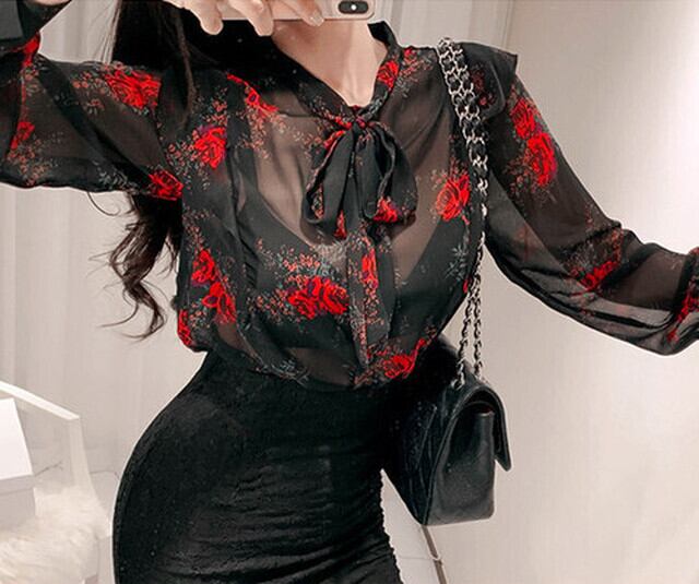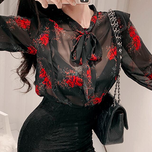 【送料無料】レディース リボンブラウス シフォンプリントシャツ 薔薇 ローズ フラワープリント 大人可愛い ママコーデ ママファッション 韓国 オルチャンファッション 人気 トレンド 新作 20代 30代 40代 きれいめ レトロ シンプル 定番 スタイリッシュ お出かけ デート おしゃれ 通勤 通学 オフィス OL デイリー 普段着 ラフ カジュアル フェミニン シック 体型カバー 着痩せ 着回し インスタ映え 秋 春 夏 CO624