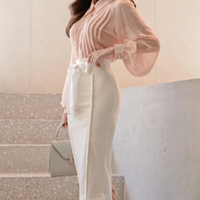 ウエストが細く、足が長く見える効果のあるデザインです。