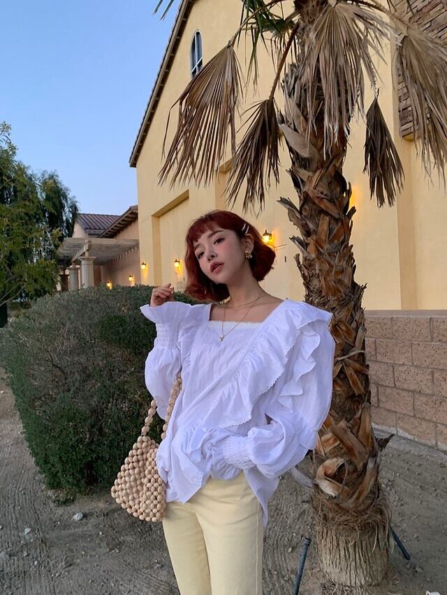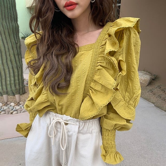 【送料無料】レディース 長袖フリルブラウス パフスリーブ シャツ ブラウス スクエアネック ルーズ バックレース 韓国 オルチャン 2カラー トップス 大人可愛い ママコーデ ママファッション 韓国 オルチャンファッション 人気 トレンド 新作 20代 30代 40代 おしゃれ ラフ シンプル デート 通学 学生 きれいめ ルーズ 秋 冬 春 夏 人気 女子力 おしゃれ セレブカジュアル ファッション 通勤 女子会 オフィス シック 着回し 流行 インスタ映え かっこいい こなれ感 CO954