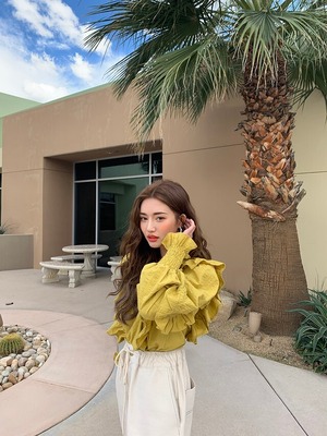 大ぶりのフリルとバックレースが印象的な長袖ブラウス☆