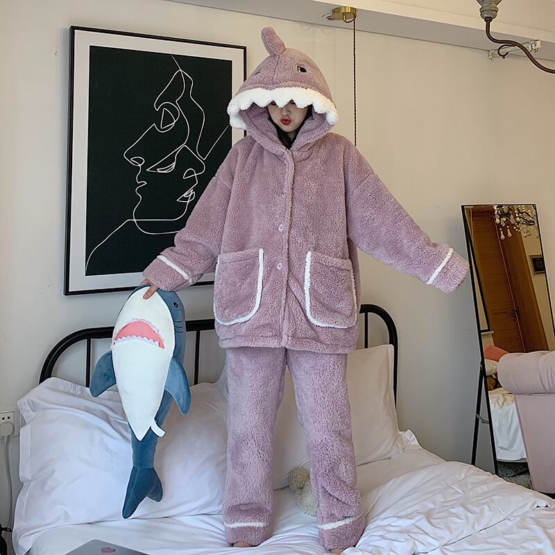 【送料無料】レディース ルームウェア もこもこ かわいい 秋冬 パジャマ 寝巻き 部屋着 ホームウェア 上下セット モコモコ 前開き セットアップ フーディー 2点セット パンツ 防寒 暖かい サメ大人可愛い ママコーデ ママファッション 韓国 オルチャンファッション 人気 トレンド 新作 20代 30代 40代 おしゃれ ラフ シンプル デート 学生 ルーズ 秋 冬 春 夏 人気 女子力 おしゃれ セレブカジュアル ファッション 通勤 女子会 オフィス シック 流行 インスタ映え こなれ感 CO958