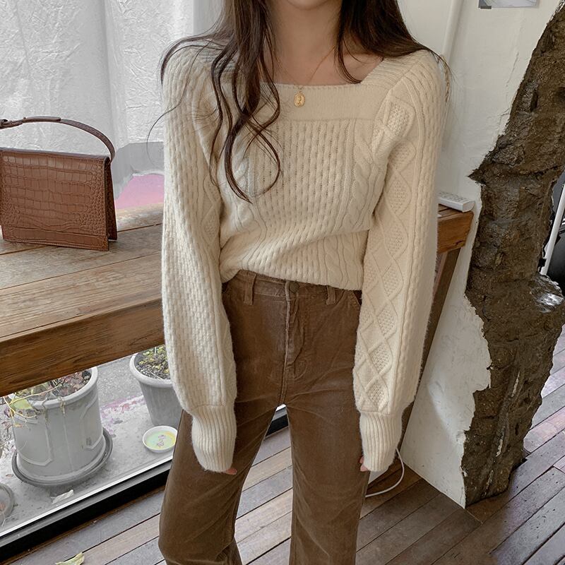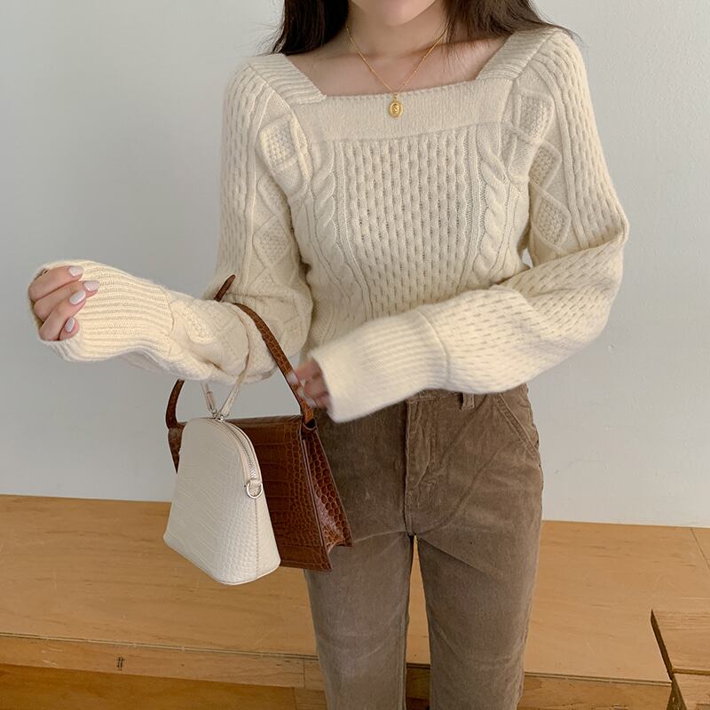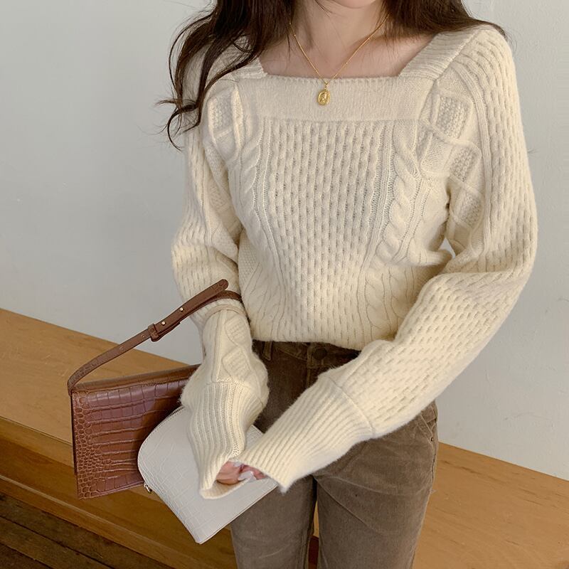 【送料無料】レディース ケーブル編み ニット セーター スクエアネック パフスリーブ トップス プルオーバー 大人可愛い ママコーデ ママファッション 韓国 オルチャンファッション 人気 トレンド 新作 20代 30代 40代 きれいめ レトロ シンプル 無地 定番 お出かけ デート おしゃれ 通勤 通学 オフィス OL デイリー 普段着 ラフ カジュアル フェミニン シック ゆったり 体型カバー 着痩せ 着回し インスタ映え 秋 冬 春 夏 CO1418