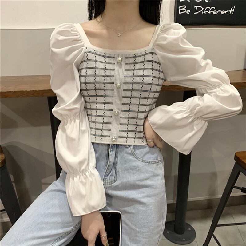 【送料無料】レディース ニット スクエアネック パール飾り パフスリーブ 大人可愛い ママコーデ ママファッション 韓国 オルチャンファッション 人気 トレンド 新作 20代 30代 40代 きれいめ レトロ シンプル 無地 定番 お出かけ デート おしゃれ 通勤 通学 オフィス OL デイリー 普段着 ラフ カジュアル フェミニン シック ゆったり 体型カバー 着痩せ 着回し インスタ映え 秋 冬 春 夏 CO1420