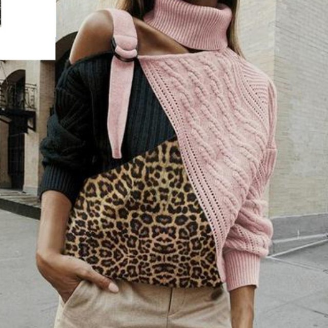 【送料無料】レディース ヒョウ柄 パッチワーク タートルネック セーター オフショルダーニット トップス 大人可愛い ママコーデ ママファッション 韓国 オルチャンファッション 人気 トレンド 新作 20代 30代 40代 おしゃれ ラフ シンプル デート 通学 学生 きれいめ ルーズ 秋 冬 春 夏 人気 女子力 おしゃれ セレブカジュアル ファッション 通勤 女子会 オフィス シック 着回し 流行 インスタ映え かっこいい こなれ感 CO1015