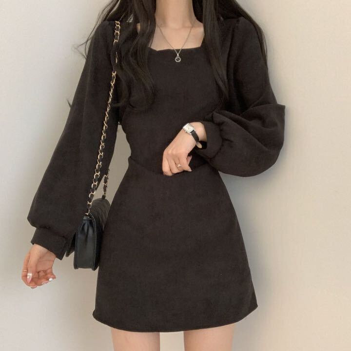 【送料無料】レディース スクエアネック ミニワンピース パフスリーブ 大人可愛い ママコーデ ママファッション 韓国 オルチャンファッション 人気 トレンド 新作 20代 30代 40代 きれいめ レトロ シンプル 無地 定番 お出かけ デート おしゃれ 通勤 通学 オフィス OL デイリー 普段着 ラフ カジュアル フェミニン シック ゆったり 体型カバー 着痩せ 着回し インスタ映え 秋 冬 春 夏 CO1429