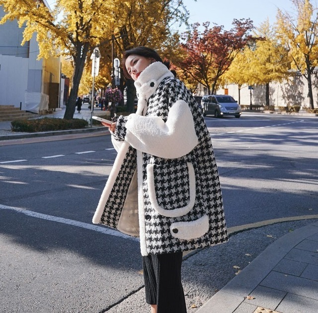 【送料無料】レディース 千鳥格子柄 ロング ボアコート ボアジャケット もこもこ アウター コート 羽織 上着 オーバーサイズ 大人可愛い ママコーデ ママファッション 韓国 オルチャンファッション 人気 トレンド 新作 20代 30代 40代 きれいめ レトロ シンプル 無地 定番 お出かけ デート おしゃれ 通勤 通学 オフィス OL デイリー 普段着 ラフ カジュアル フェミニン シック ゆったり 体型カバー 着痩せ 着回し インスタ映え 秋 冬 CO1454