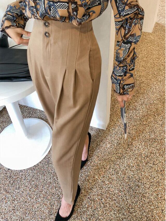 【送料無料】レディー アンクル パンツ ハイウエスト ダブルボタン 大人可愛い ママコーデ ママファッション 韓国 オルチャンファッション 人気 トレンド 新作 20代 30代 40代 きれいめ レトロ シンプル 定番 スタイリッシュ お出かけ デート おしゃれ 通勤 通学 オフィス OL デイリー 普段着 ラフ カジュアル フェミニン シック 体型カバー 着痩せ 着回し インスタ映え 秋 冬 春 夏 CO749
