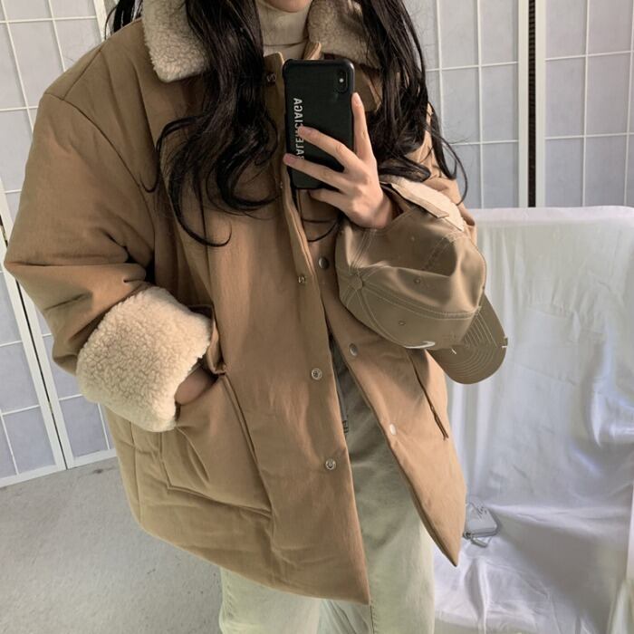 袖部分と襟のボアがおしゃれで可愛いこの冬マストアイテム♪