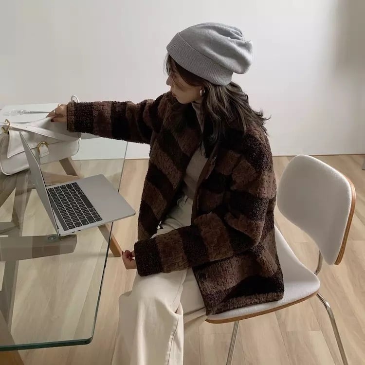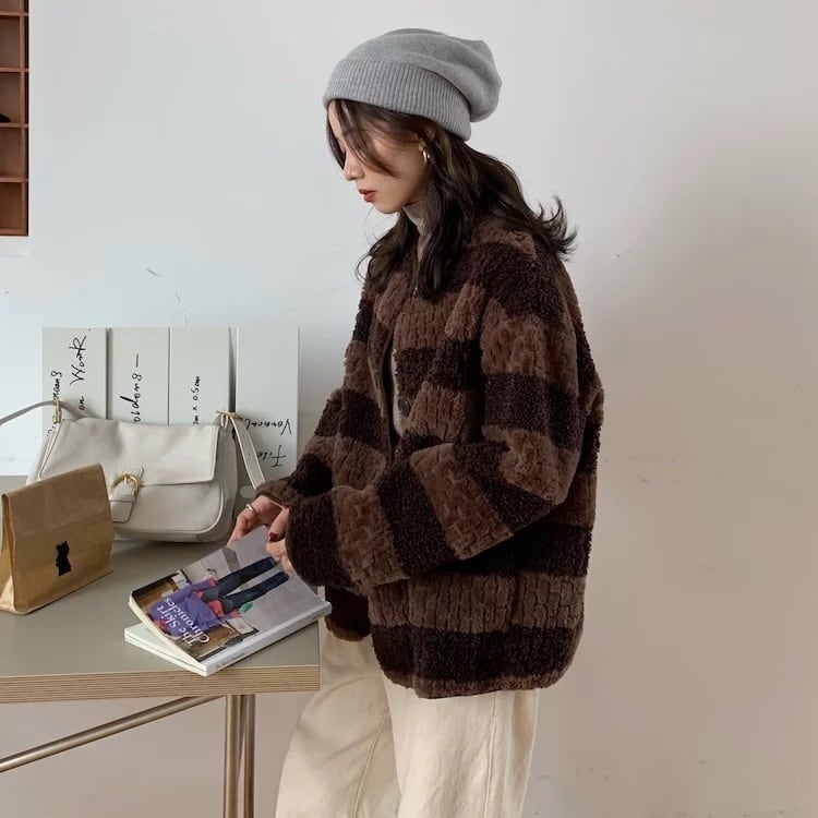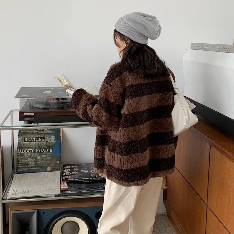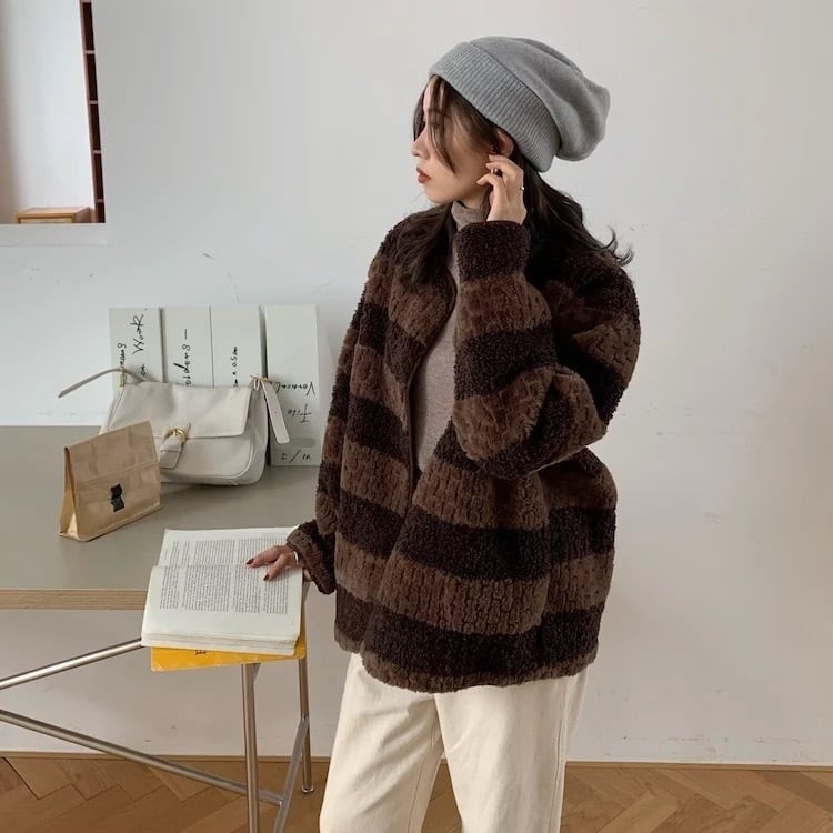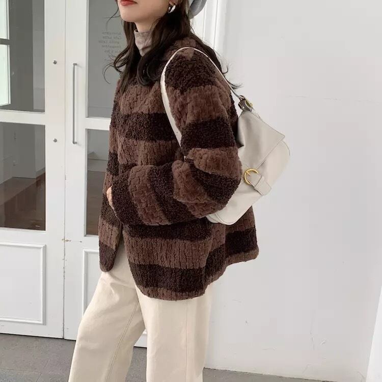 【送料無料】レディース ストライプ もこもこ ジャケット ショート丈 ボアジャケット アウター 大人可愛い ママコーデ ママファッション 韓国 オルチャンファッション 人気 トレンド 新作 20代 30代 40代 きれいめ レトロ シンプル 無地 定番 お出かけ デート おしゃれ 通勤 通学 オフィス OL デイリー 普段着 ラフ カジュアル フェミニン シック ゆったり 体型カバー 着痩せ 着回し インスタ映え 秋 冬 CO1480